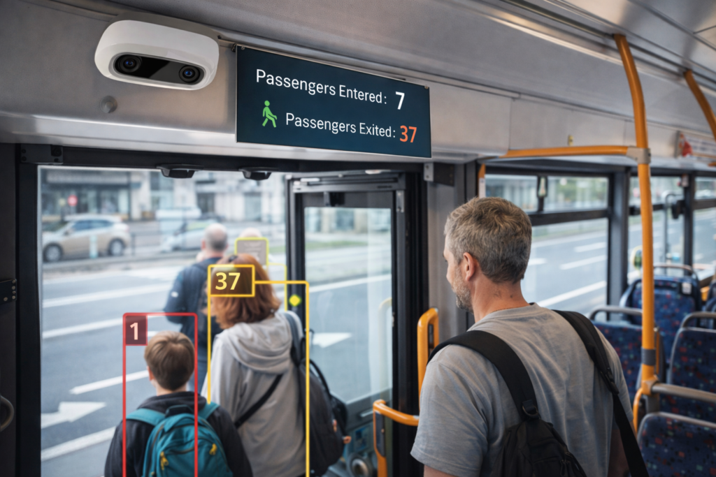 Er eignet sich ideal für die Fahrgastzählung in Bussen, Zügen und anderen öffentlichen Verkehrsmitteln.