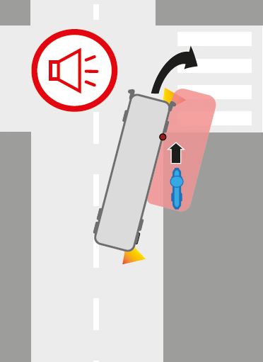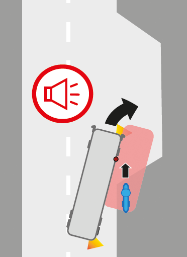 Tehlike durumunda, TurnCAM-AI tur asistanı hemen tepki verir ve sürücüyü görsel ve akustik bir sinyalle uyarır.