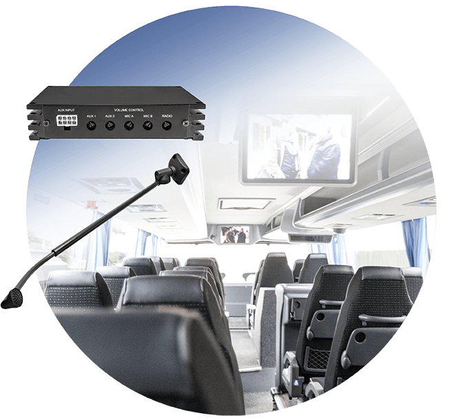Sürekli ayarlanabilir sürücü mikrofonları ve iç ve dış duyurular için dijital ses amplifikatörlerinden, yüksek kaliteli otobüs radyolarını bağlamak için çok kanallı bir amplifikatora kadar kapsamlı bir ekipman yelpazesi sunuyoruz.
