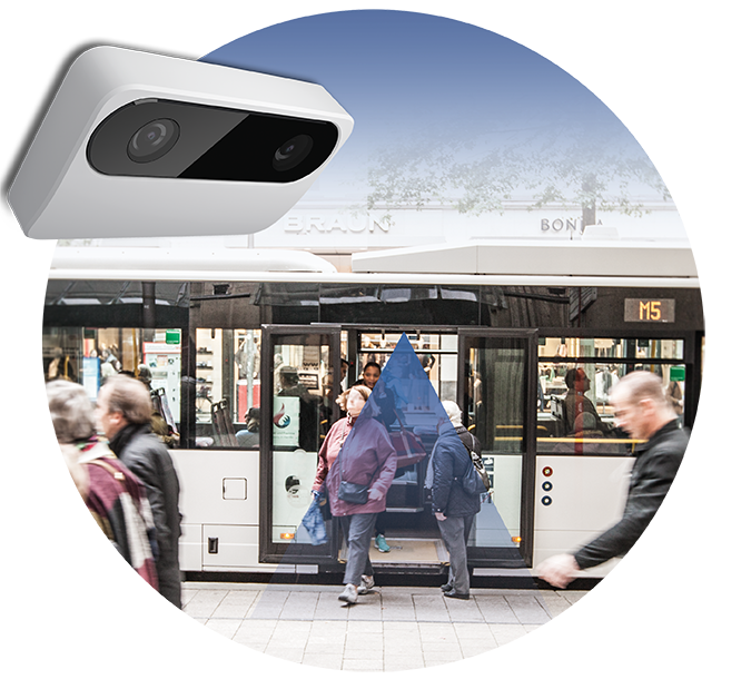 Gövde versiyonundaki modern sayma sensörü, binip inen yolcu sayısını kaydetmek için kullanılır. Otobüslerde, trenlerde ve diğer toplu taşıma araçlarında yolcu sayımı için idealdir.